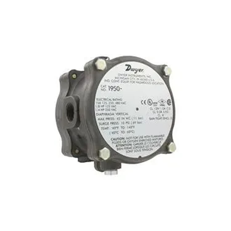 美國Dwyer 1950-0-2F 37差壓開關(guān),1950系列防爆型,量程0.15-0.5 inH?O,重復(fù)性±3%,旋鈕現(xiàn)場設(shè)定,SPDT觸點15 A@480 VAC。鑄鋁殼體IP66,1/8" FNPT接口,工作溫度-40~82 ℃,UL/CSA/FM防爆認(rèn)證,面板安裝,適用于潔凈室、過濾器、風(fēng)管微差壓報警。