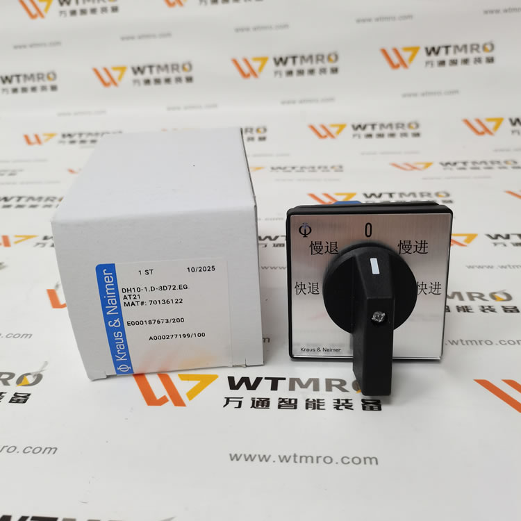 Kraus & Naimer DH10-1.D-8D72.EG.AT21 是一款高性能旋轉選擇開關,專為工業自動化控制設計。其緊湊型金屬外殼結構確保耐用性與抗沖擊性,適用于復雜工況環境。開關提供多檔位精準控制(如“快進/慢進”“快退/慢退”),滿足設備速度調節或方向切換需求。
