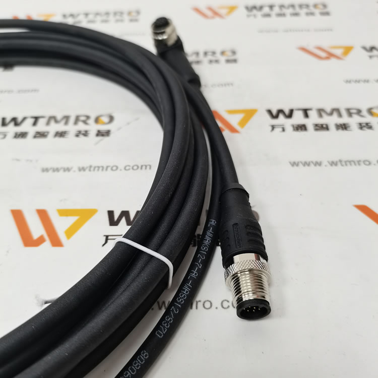 該線纜兩端分別為M12母頭斜角12極與M12公頭直線12極,這樣的設計使其能夠精準適配相應的傳感器與執行器設備,確保信號傳輸的穩定性與高效性。