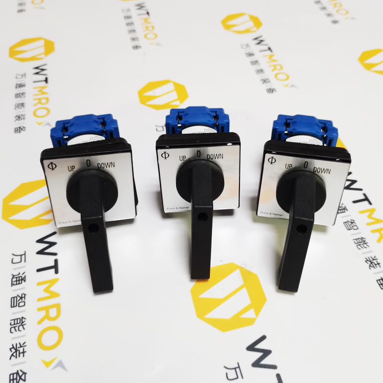 奧地利Kraus&Naimer轉(zhuǎn)換開關(guān)的接觸系統(tǒng)是由數(shù)個(gè)裝嵌在絕緣殼體內(nèi)的靜觸頭座和可動(dòng)支架中的動(dòng)觸頭構(gòu)成。動(dòng)觸頭是雙斷點(diǎn)對(duì)接式的觸橋,在附有手柄的轉(zhuǎn)軸上,隨轉(zhuǎn)軸旋至不同位置使電路接通或斷開。定位機(jī)構(gòu)采用滾輪卡棘輪結(jié)構(gòu),配置不同的限位件,可獲得不同檔位的開關(guān)。轉(zhuǎn)換開關(guān)由多層絕緣殼體組裝而成,可立體布置,減小了安裝面積,結(jié)構(gòu)簡單、緊湊,操作安全可靠。轉(zhuǎn)換開關(guān)可以按線路的要求組成不同接法的開關(guān),以適應(yīng)不同電路的要求。在控制和測量系統(tǒng)中,采用轉(zhuǎn)換開關(guān)可進(jìn)行電路的轉(zhuǎn)換。例如電工設(shè)備供電電源的倒換,電動(dòng)機(jī)的正反轉(zhuǎn)倒換,測量回路中電壓、電流的換相等等。用轉(zhuǎn)換開關(guān)代替開關(guān)使用,不僅可使控制回路或測量回路簡化,并能避免操作上的差錯(cuò),還能夠減少使用元件的數(shù)量。轉(zhuǎn)換開關(guān)是開關(guān)的一種發(fā)展,其區(qū)別是開關(guān)操作時(shí)上下平面動(dòng)作轉(zhuǎn)換開關(guān)則是左右旋轉(zhuǎn)平面動(dòng)作,并且可制成多觸頭、多檔位的開關(guān)。