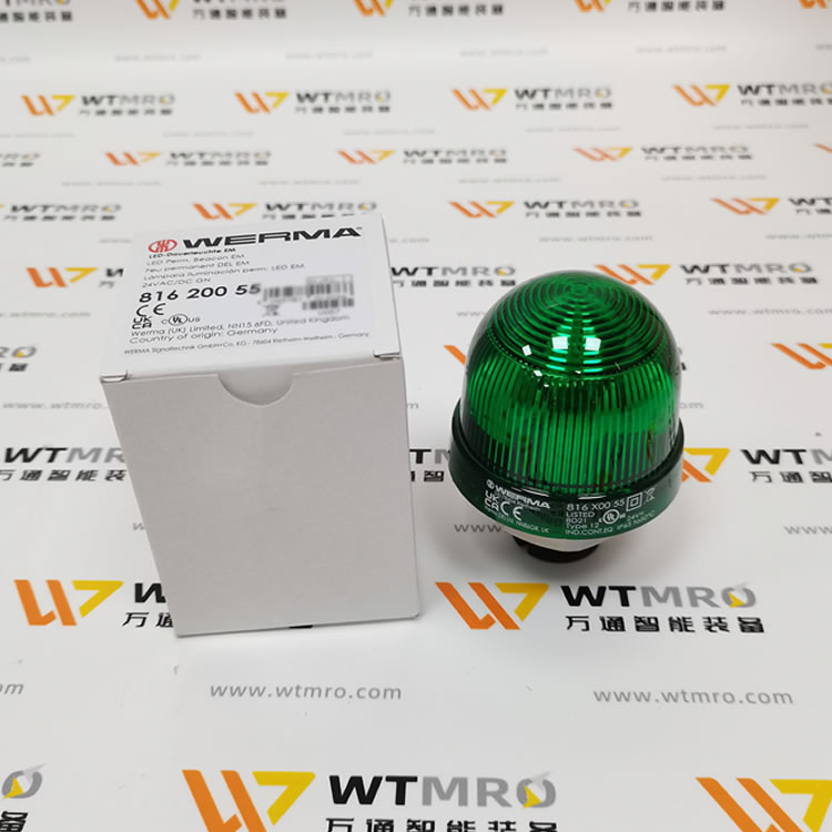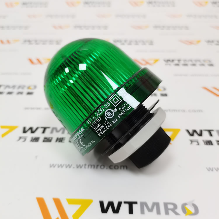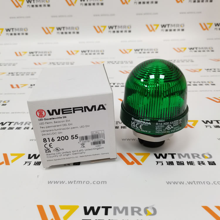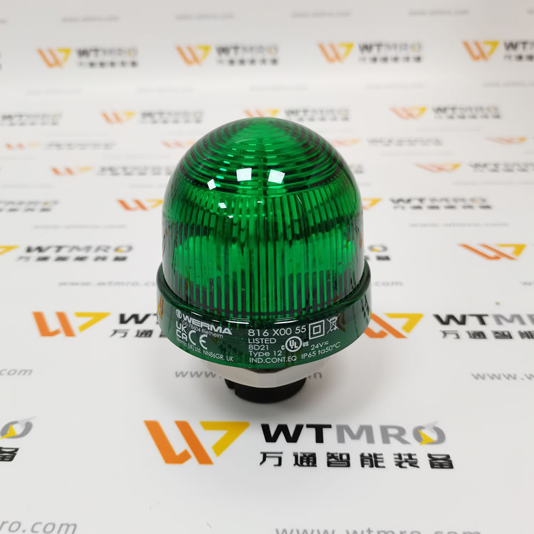 WERMA 816.200.55 816 系列綠色常亮 LED 信標燈塔。燈體采用 PC/ABS 高強度復合材質,綠色圓頂透光均勻,防護等級 IP65,可適應工業多粉塵潮濕工況。