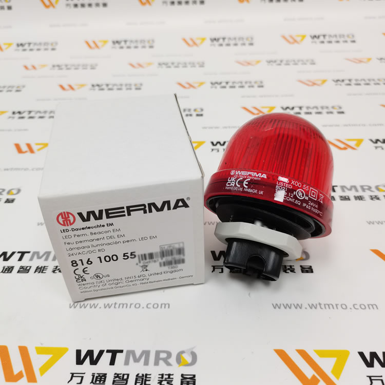 WERMA 816.100.55 816 系列紅色常亮 LED 信標燈塔。燈體采用 PC/ABS 高強度復合材質,紅色圓頂透光醒目,防護等級 IP65,可適配工業多粉塵、潮濕復雜工況。