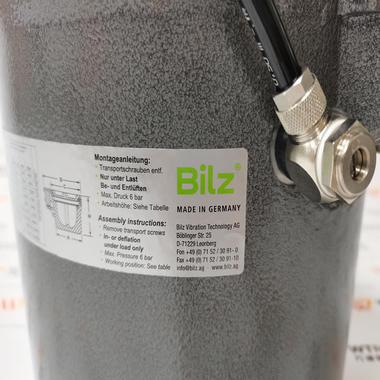 bilz空氣隔振裝置BiAir由一個鑄鋁本體組成,其空氣室被一個薄壁柔性滾柱隔膜包圍。柱塞安裝在隔膜上,并被推入空氣室。
